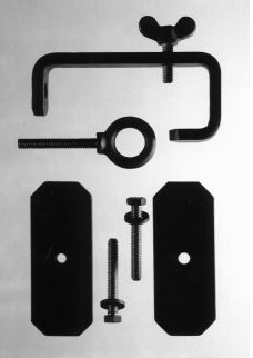 DESCRIPTION The Airwall Hanger Kit is an assortment of load-rated hardware providing three alternate methods of rigging from a room divider support track. Two compression plates sandwich the lip of the track providing a secure method of temporary attachment. FEATURES The kit includes a bolt for fastening a single unit, a drop-forged eyebolt for a hanging point and a hook clamp which, when used in pairs, can support a light bar or pipe. All parts are hard finished. DIMENSIONS Upper plate is 2”W X 5”L X 3/8"T Lower plate is 2”W X 5”L X 1/4"T Bolts are 3/8” X 2 1/2”L Eye-bolt is 3/8” X 2 1/2”L with 1”ID eye Hook-clamp measures 6”L X 1”W WARNING Suitability of structure to support the working load must be verified by qualified personnel prior to installation. Failure to read and follow user instruction may result in injury or death. For a PDF version of the specification click here. PRICING Please contact us for current pricing. Dealer inquiries invited. | ||